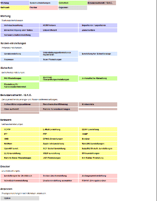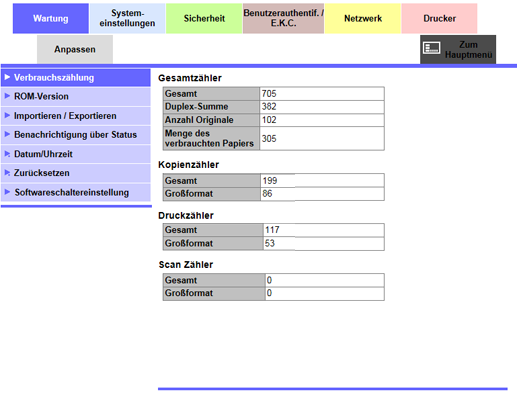 Wenn Sie auf das Register Zum Hauptmenü klicken, werden die Menüelemente, die im Benutzermodus verwendet werden können, in einem zentralen Bildschirm angezeigt.