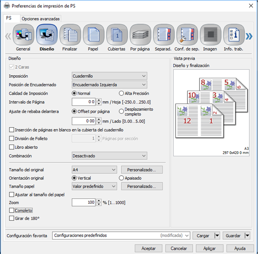 Para obtener más información sobre la configuración, consulte Información general sobre la impresión de libro abierto.