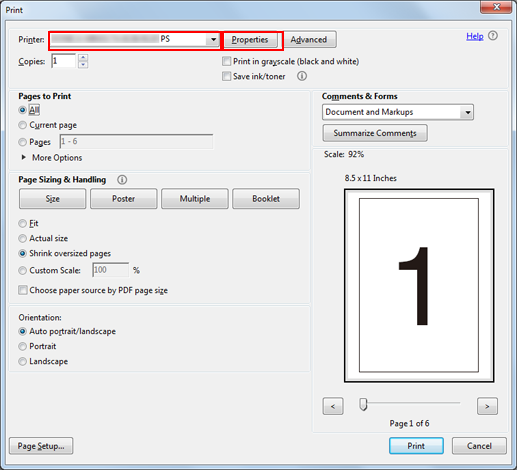 Seleccione la impresora que se va a utilizar para imprimir y haga clic en Propiedades.