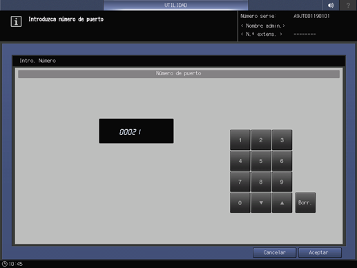 Utilice el teclado indicado en el panel táctil para introducir el valor definido.