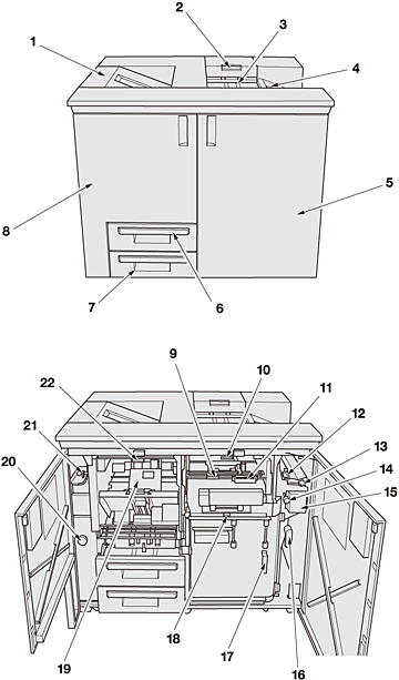 8 | Puerta izquierda de la grapadora en el lomo | Se abre para permitir la introducción de grapas o la extracción de papel atascado. |