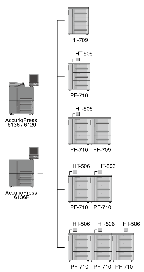Si están instaladas las tres unidades de alimentación de papel PF-710, no se puede instalar la unidad de inserción posterior de gran capacidad PI-PFU en la máquina.