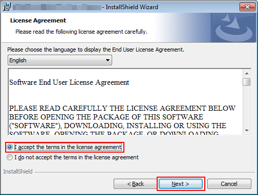 explicación adicionalPara cambiar el idioma del acuerdo de licencia, seleccione el que desee de la lista desplegable.