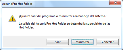 explicación adicionalSalir: AccurioPro Hot Folder finaliza. Se desactiva la función Hot Folder.