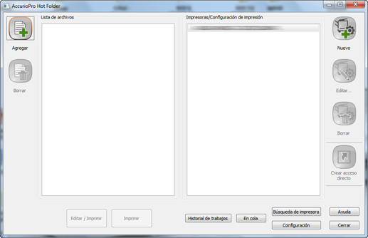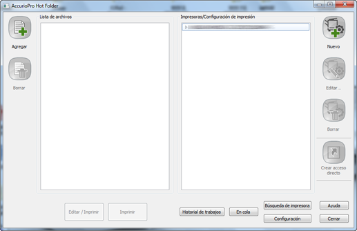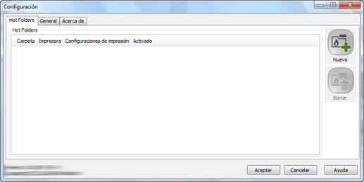 explicación adicionalSi hay Hot Folders configuradas, estas se muestran en Hot Folders.