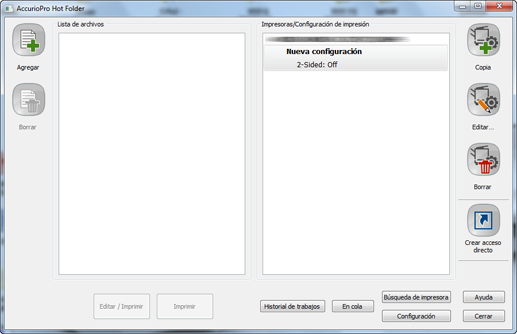 Puede empezar a imprimir simplemente copiando un archivo (por ejemplo, PDF/TIFF/PS) en la Hot Folder de AccurioPro Hot Folder.