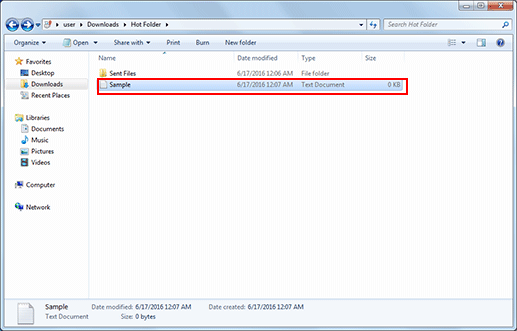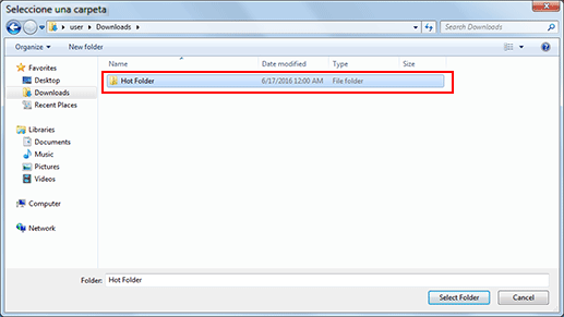 Ejemplo: Se selecciona una carpeta llamada Hot Folder.