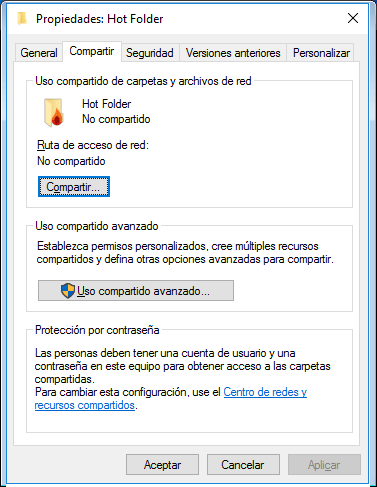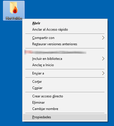 Haga clic con el botón derecho del ratón en la Hot Folder que desee compartir y haga clic en Propiedades.