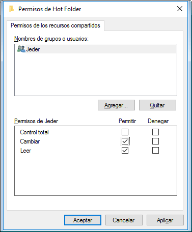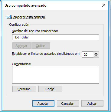 Si se selecciona como carpeta compartida una Hot Folder, puede utilizarse desde un ordenador de la red.