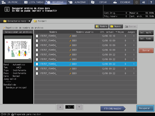 explicación adicionalSeleccione el directorio (directorio raíz, carpeta, cuadro de usuario) del disco duro en el que se almacena la tarea. Si la carpeta o el cuadro de usuario están protegidos mediante contraseña, introduzca la contraseña.