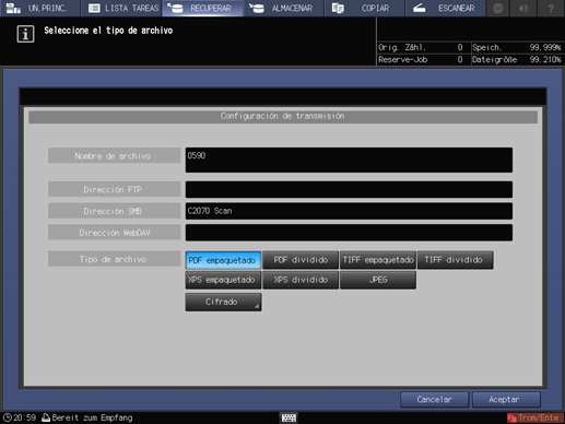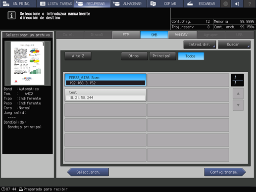 Puede enviar una tarea a ordenadores de la red por medio del protocolo adecuado (FTP, SMB o WebDAV).