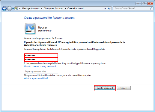 Introduzca una contraseña y vuelva a introducirla y, a continuación, haga clic en Crear contraseña.