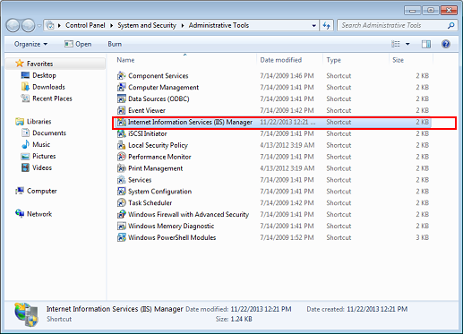 Haga doble clic en Administrador de Internet Information Services (IIS).
