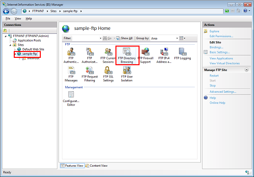 Seleccione el sitio FTP y, a continuación, haga doble clic en Examen de directorios FTP.