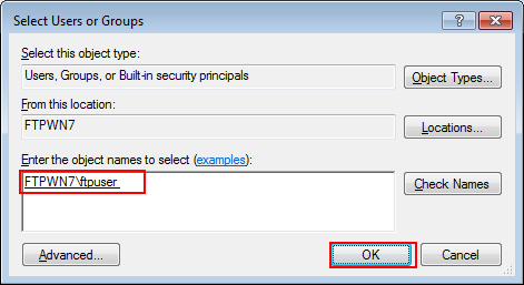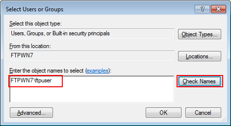 Introducir los nombres de objetos que van a seleccionarse | FTPWN7\ftpuser