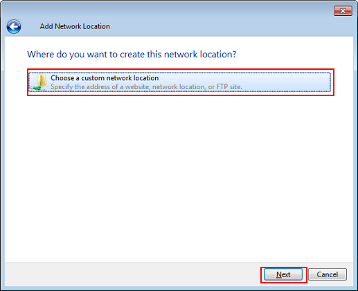 Seleccione Elegir una ubicación de red predeterminada y haga clic en Siguiente.