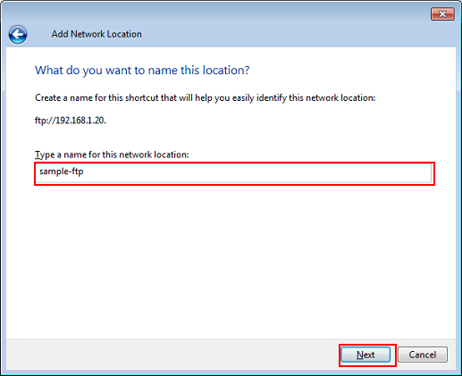 Introduzca un nombre para la ubicación de red y haga clic en Siguiente.