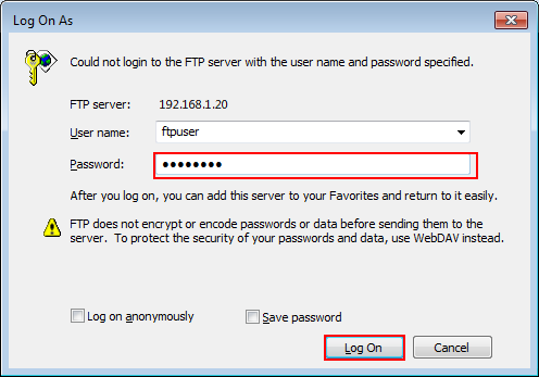 Contraseña | Contraseña de usuario de inicio de sesión en el sitio FTP