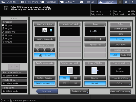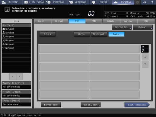 Seleccione la dirección FTP que ha registrado y pulse Conf. escaneado.