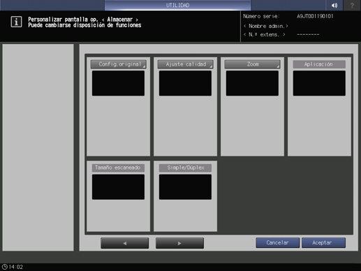 Permite modificar el orden de visualización de los elementos de configuración mostrados en la pantalla de almacenamiento.