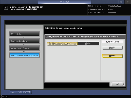 Se visualiza la pantalla Config. usuario/cuenta común.