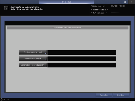 explicación adicionalPara obtener información sobre cómo especificar la contraseña de administrador, consulte Contraseña de admin..