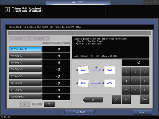 Use [+ / -] to select the plus or minus of the numeric value. To change [Current Data], press [Set].