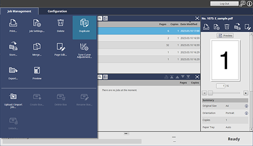 Jobs selected from the job list can also be duplicated by the following operation.