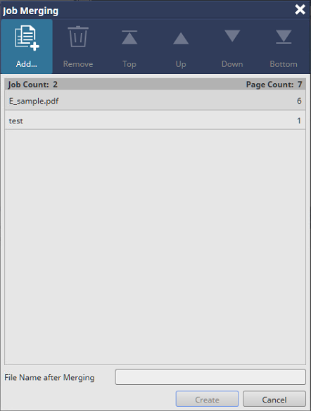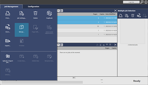 The job is added to the [Job Merging] screen.