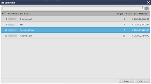 The [Job Selection] screen is displayed.