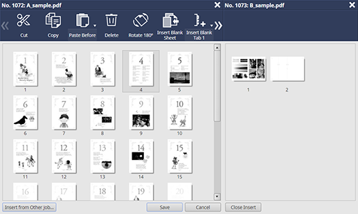 [Paste Before] is inserted before the selected image page, and [Paste After] is inserted after the selected image page. Click , to switch between [Before] or [After].
