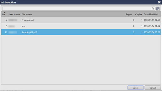 " to display the [Date Filter] screen, you can search a job by its update date or creation date. Set the search range and date, and click [OK]; the jobs that match the specified conditions are displayed in the list.
