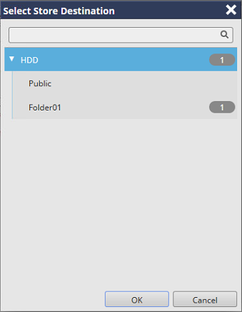 *: Depending on the output method, the [Select Store Destination] screen is displayed after setting. Select the destination folder or box. Create destination folders or boxes in advance. For details about how to create a folder, refer to [Create Folder...]. For details about how to create a box, refer to [Create Box...].