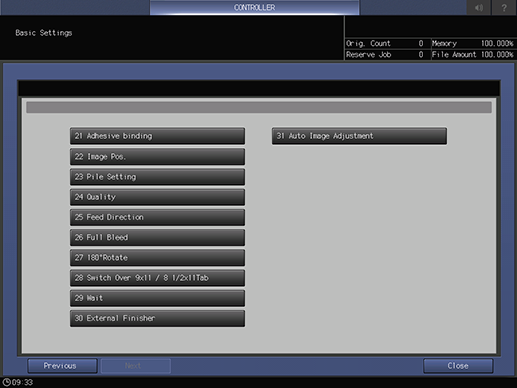 Touch panel - [MACHINE] - [Controller] - [Direct Print Setting] - [Basic Settings]
