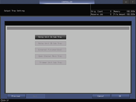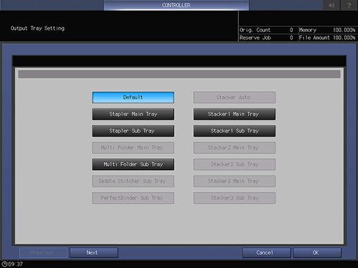 Output tray selection key | Selects the output tray. Selecting [Default] automatically selects the appropriate output tray depending on the print job. |