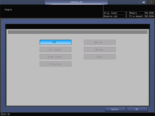 [2 Position] | Performs 2-position staple to suit the setting of [Binding Position]. You can set the staple interval. | |