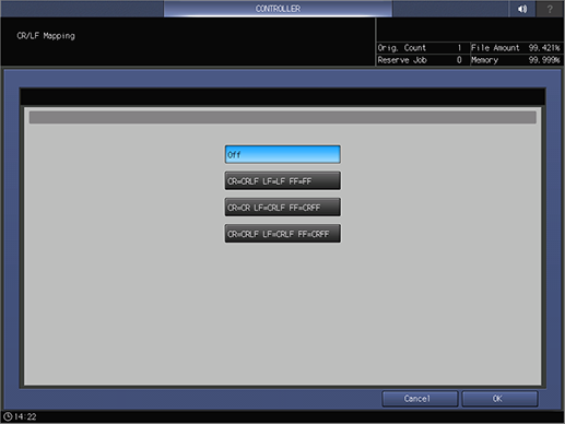 [CR=CRLF LF=CRLF FF=CRFF] | Replaces CR and LF with CRLF, and FF with CRFF. |