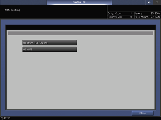 Touch panel - [MACHINE] - [Controller] - [Direct Print Setting] - [APPE Setting]