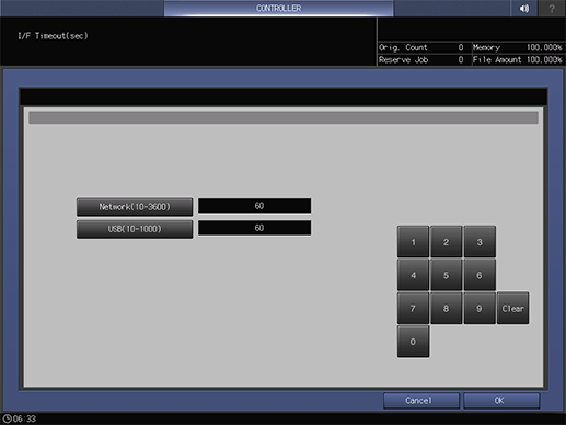 Range: 10 sec. to 3,600 sec. ([Network(10-3600)]), 10 sec. to 1,600 sec. ([USB(10-1000)])