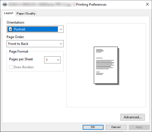 You can switch the [Layout] and [Paper/Quality] tab to configure various settings.