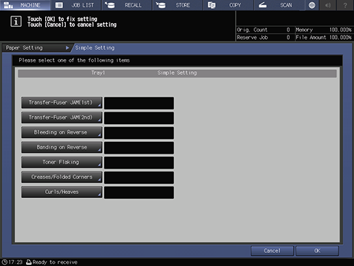 Touch panel - [MACHINE] - [Paper Setting] - [Adjustment] - [Simple Setting]