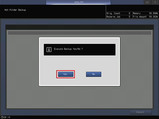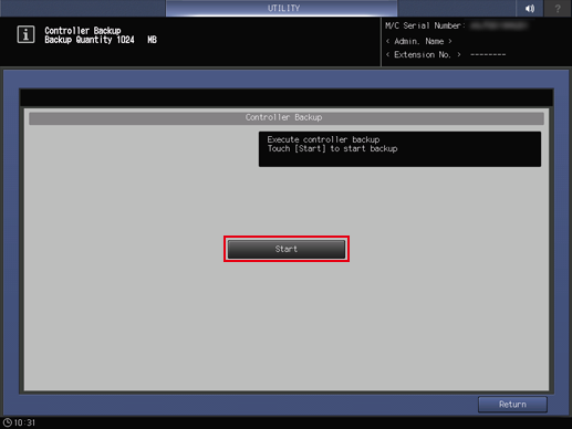 Press [Start] to start the backup of the settings data stored on the Image Controller.