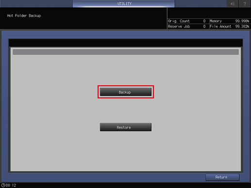 You can save job data, Image Controller, and hot folder settings data in the HDD to an external storage device, and restore any such previously stored data. This feature is a safety measure in case data is accidentally lost, or for if you want to restore the system to a previous state.
