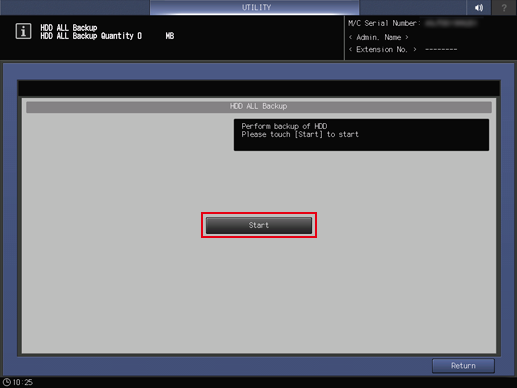 Press [Start] to start backup of the data stored in the backup folder on the HDD.