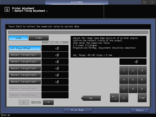 [Sep.todas bandejas]: [Rango de ajuste: -45~+45, 1 paso = 0,1mm]