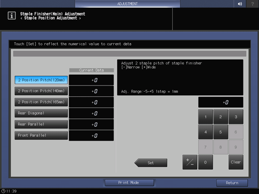 Separación 2 posiciones / [Diagonal posterior]: [Rango aj.:-5~+5 1paso = 1mm]