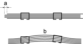 Compruebe si hay error de alineación "a" y distorsión "b" en la pila de papel.