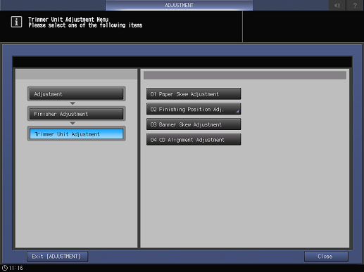 Panel táctil - [UN.PRINC.] - [Ajuste] - [Ajuste unidad de acabado] - [Ajuste de la unidad de corte]