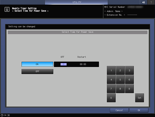 Utilice el teclado en pantalla o el Teclado del Panel de control para introducir la hora para realizar el [Reinic.].