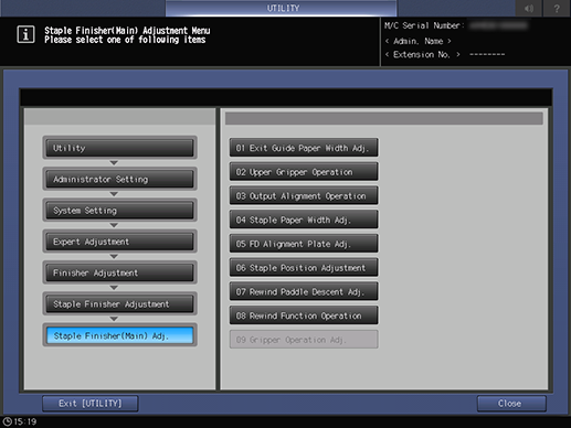 Panel de control - Utilidades/Contadores - [Conf. de administrador] - [Configuración sistema] - [Ajuste avanzado] - [Ajuste unidad de acabado] - [Aj. unidad acabado grapas] - [Aj u/acabado con grap (Ppal)]